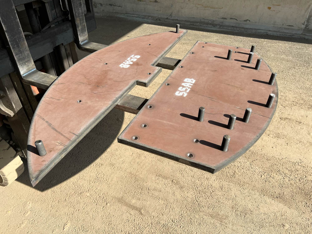 Contre-lames de chargeuses en Hardox® 500, épaisseur 40mm, à destination d’une société de réparation.